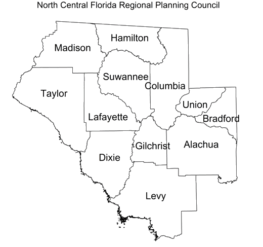 The North Central Florida Region includes 12 counties